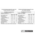 Ingredientes: açúcar, pasta de cacau, manteiga de cacau, laranja cristalizada em tiras, leite em pó integral, emulsificante lecitina de soja e aromatizante. ALÉRGICOS: CONTÉM DERIVADOS DE LEITE E SOJA. PODE CONTER AMENDOIM, AMÊNDOA, AVELÃS, CASTANHA-DE-CAJU, CASTANHA-DO-BRASIL, MACADÂMIAS, NOZES E PISTACHES. CONTÉM LACTOSE. NÃO CONTÉM GLÚTEN.