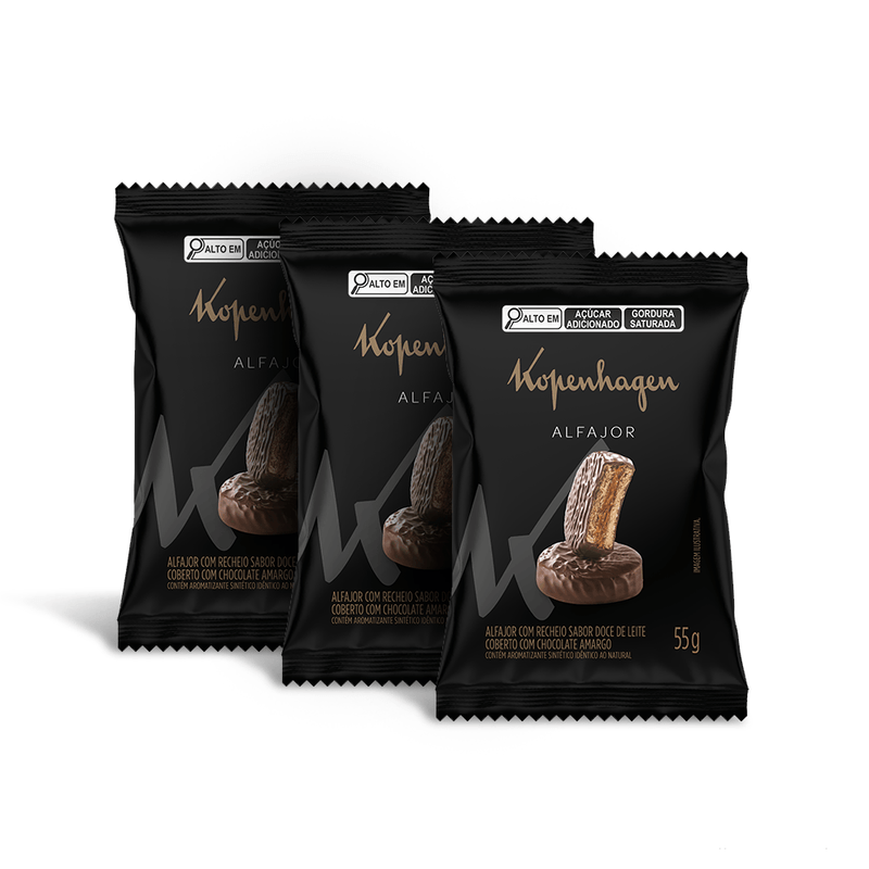 Toda a qualidade e sabor Kopenhagen na medida certa para você aproveitar. Esse é o Kit Alfajor Amargo: biscoito com recheio sabor doce de leite e coberto com chocolate amargo. Neste kit de 55g, você encontra 3 unidades dos tabletes. Experimente!