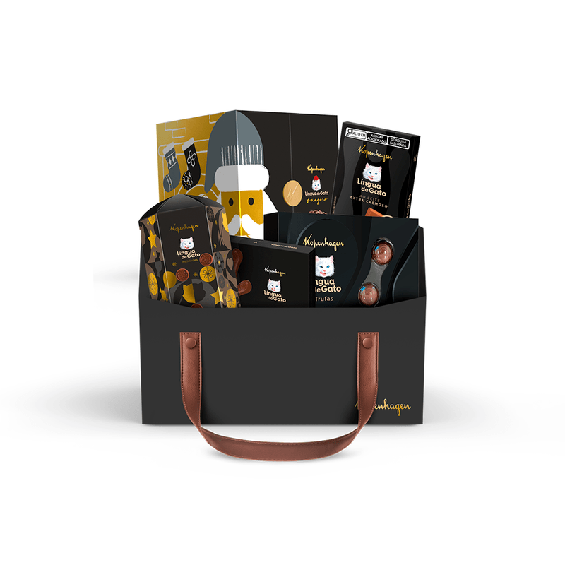Contém: 1 Panettone Língua de Gato 834g, 1 Medalhão Língua de Gato 149g, 1 Trufas Língua de Gato 150g, 1 Tablete Língua de Gato 40g e 1 Língua de gato 85g.