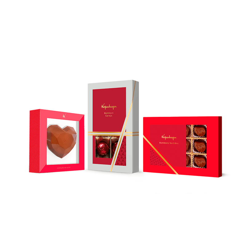 Contém: 1 Bombom São Paulo 70G, 1 Bombons Cereja 150G e 1 Coração ao Leite