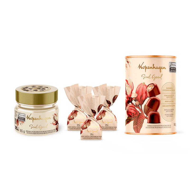 Contém: 1 Bombons Cookies And Cream Soul Good 160G, 3 Bombons Cookies And Cream Soul Good 20G e 1 Creme Cookies And Cream Soul Good Spreads 165G.