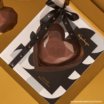 Contém: ½ coração de chocolate ao leite e ½ coração de chocolate branco