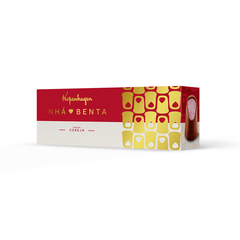 Wafer com marshmallow sabor cereja, coberto com chocolate ao leite.
