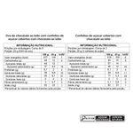 Ingredientes: açúcar, leite em pó integral, manteiga de cacau, pasta de cacau, confeitos de açúcar, água, antiumectante talco, espessante goma arábica e aromatizante. ALÉRGICOS: CONTÉM DERIVADOS DE LEITE. PODE CONTER AMENDOIM, AMÊNDOA, AVELÃS, CASTANHA-DE-CAJU, CASTANHA-DO-BRASIL, MACADÂMIAS, NOZES, PISTACHES E SOJA. CONTÉM LACTOSE. NÃO CONTÉM GLÚTEN.