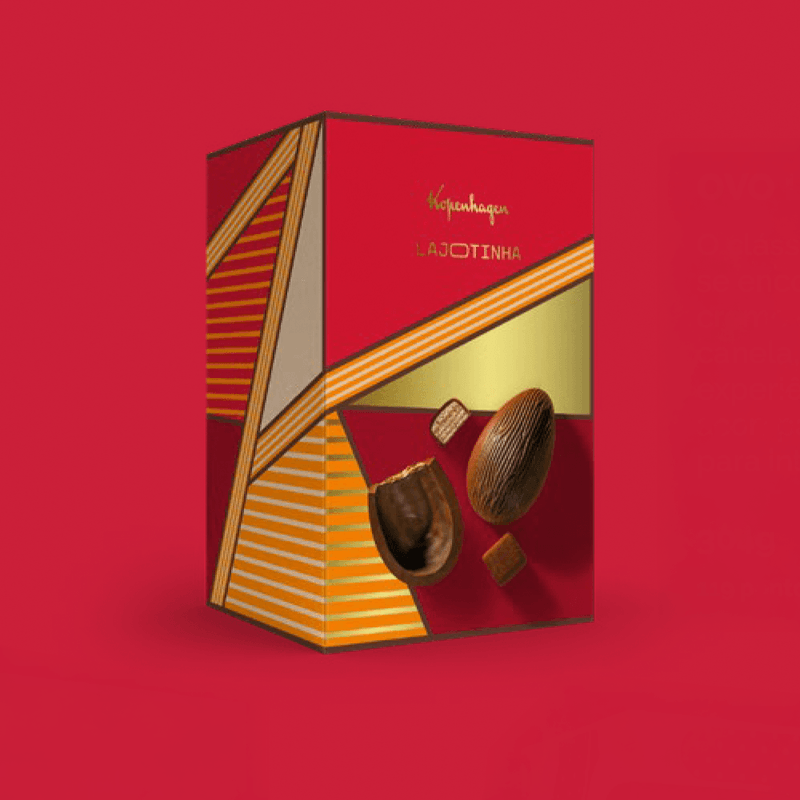 Este ovo de Páscoa é uma reinterpretação luxuosa da famosa Lajotinha. Ovo de chocolate ao leite com casca recheada com creme de castanha de caju, toque de canela e wafer. Acompanha mini lajotinhas.