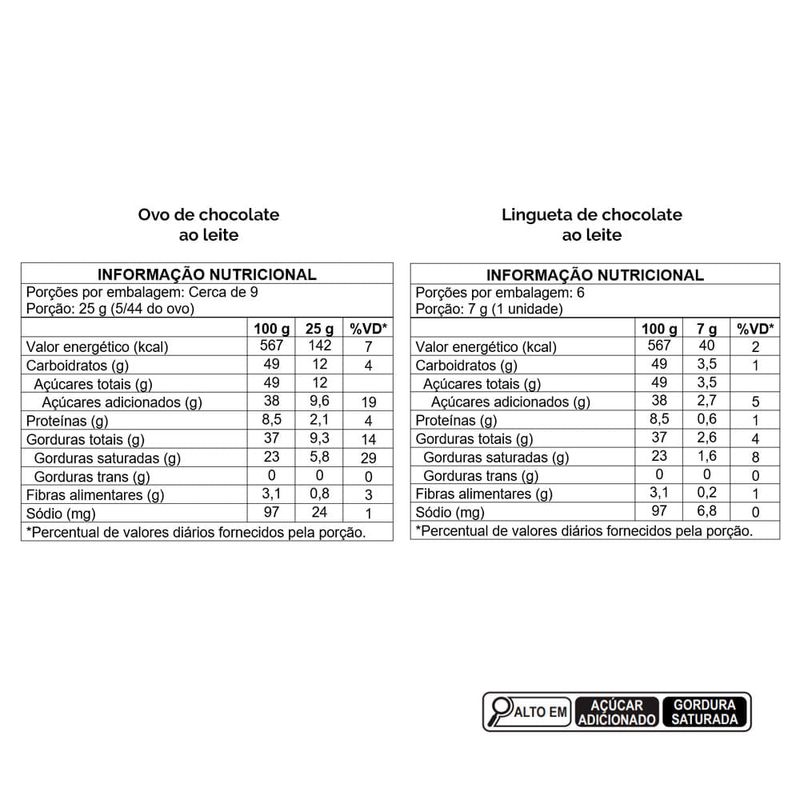 Ovo de chocolate ao leite e lingueta de chocolate ao leite.