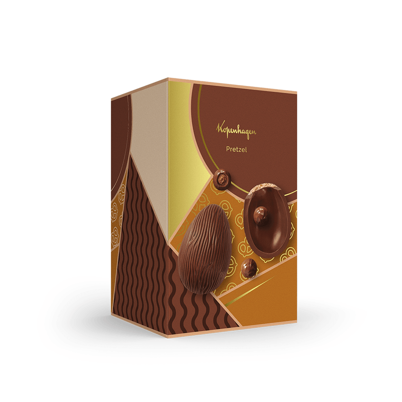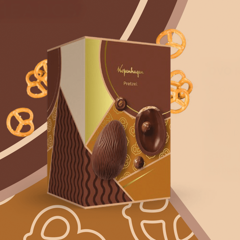 • Ovo de chocolate ao leite com recheio de creme com pedaços de Pretzel