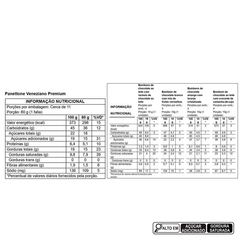 Um presente completo e inesquecível! Com formato diferenciado e sofisticado, o Panettone Veneziano Premium se destaca pela elegância e sabor. Massa macia com gotas de chocolate ao leite, laranja cristalizada e castanha-de-caju, coberto com chocolate ao leite e decorado com granulados de chocolate. Acompanha uma seleção especial com 16 bombons artesanais. Um verdadeiro presente gourmet que une sofisticação, variedade e um visual irresistível para celebrar o Natal com muito mais estilo.