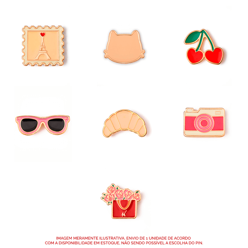 Contém 1 Pin Paris Diverso. Envio aleatório de acordo com a disponibilidade em estoque, não sendo possível a escolha do modelo.