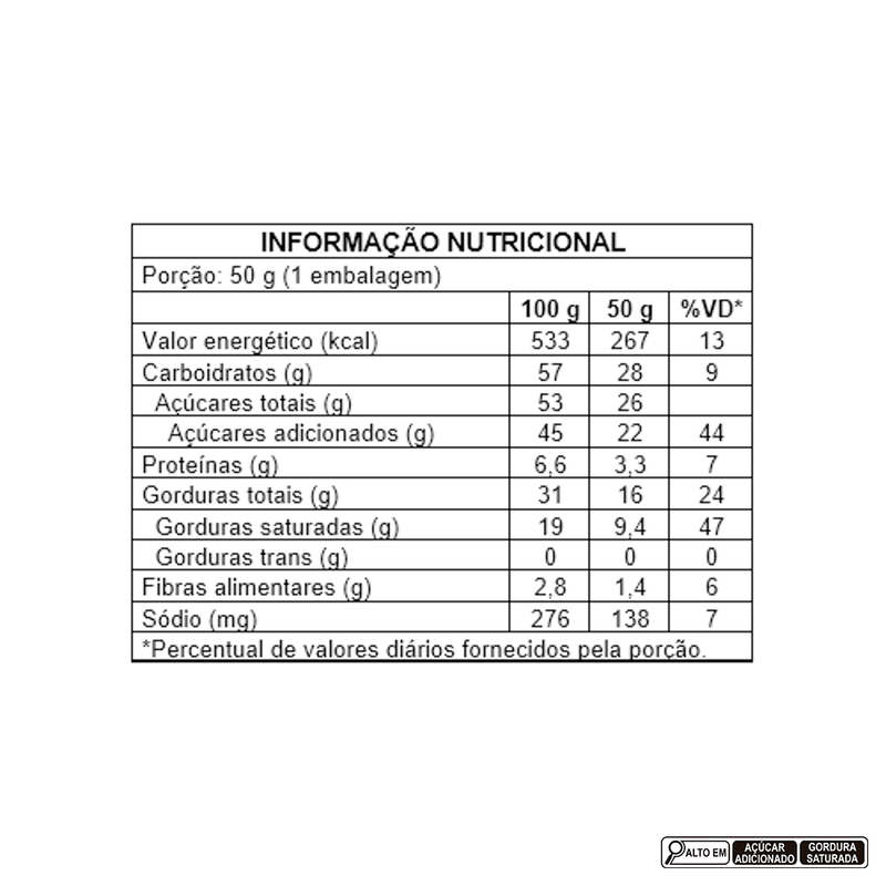Ingredientes: pipoca sabor caramelo (açúcar, milho de pipoca estourado, xarope de glucose, gordura vegetal, óleo de girassol, manteiga, sal, emulsificantes: mono e diglicerídeos de ácidos graxos e lecitina de soja, regulador de acidez bicarbonato de sódio e aromatizantes), açúcar, leite em pó integral, manteiga de cacau, pasta de cacau, emulsificante lecitina de soja e aromatizante. ALÉRGICOS: CONTÉM DERIVADOS DE LEITE E SOJA. PODE CONTER AMENDOIM, AMÊNDOAS, AVELÃ, AVEIA, CASTANHA-DE-CAJU, CASTANHA-DO-BRASIL, CENTEIO, CEVADA, MACADÂMIA, NOZES, PISTACHE, TRIGO E OVOS. CONTÉM LACTOSE. CONTÉM GLÚTEN.